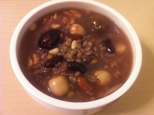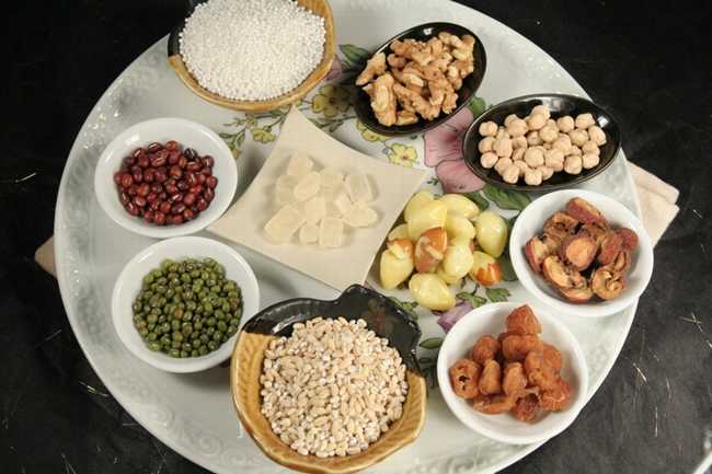 将糯米、红豆、枣子、栗子、花生、白果、莲子、百合煮成甜粥。有些女性也喜欢在其中加入桂圆、龙眼肉、蜜饯等各